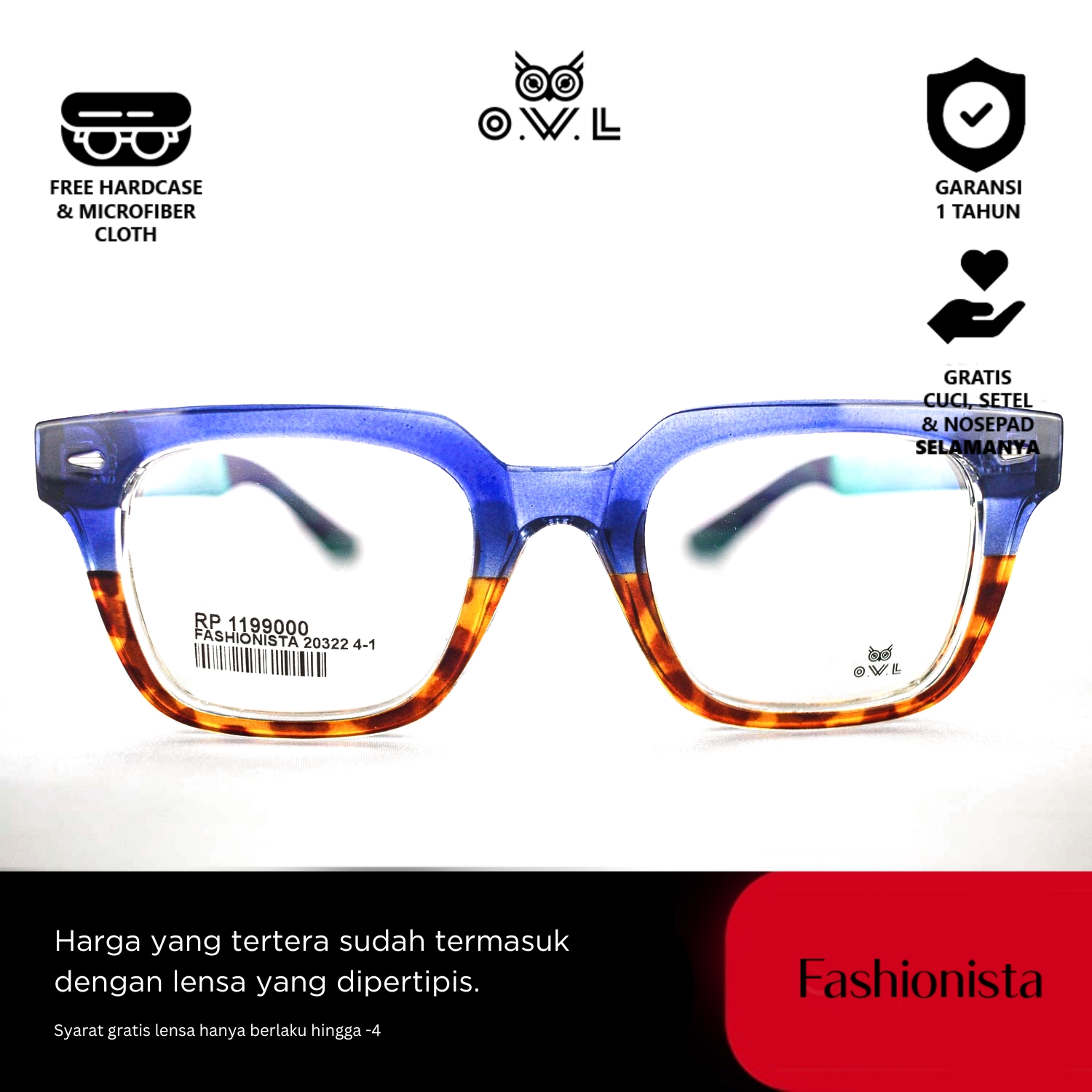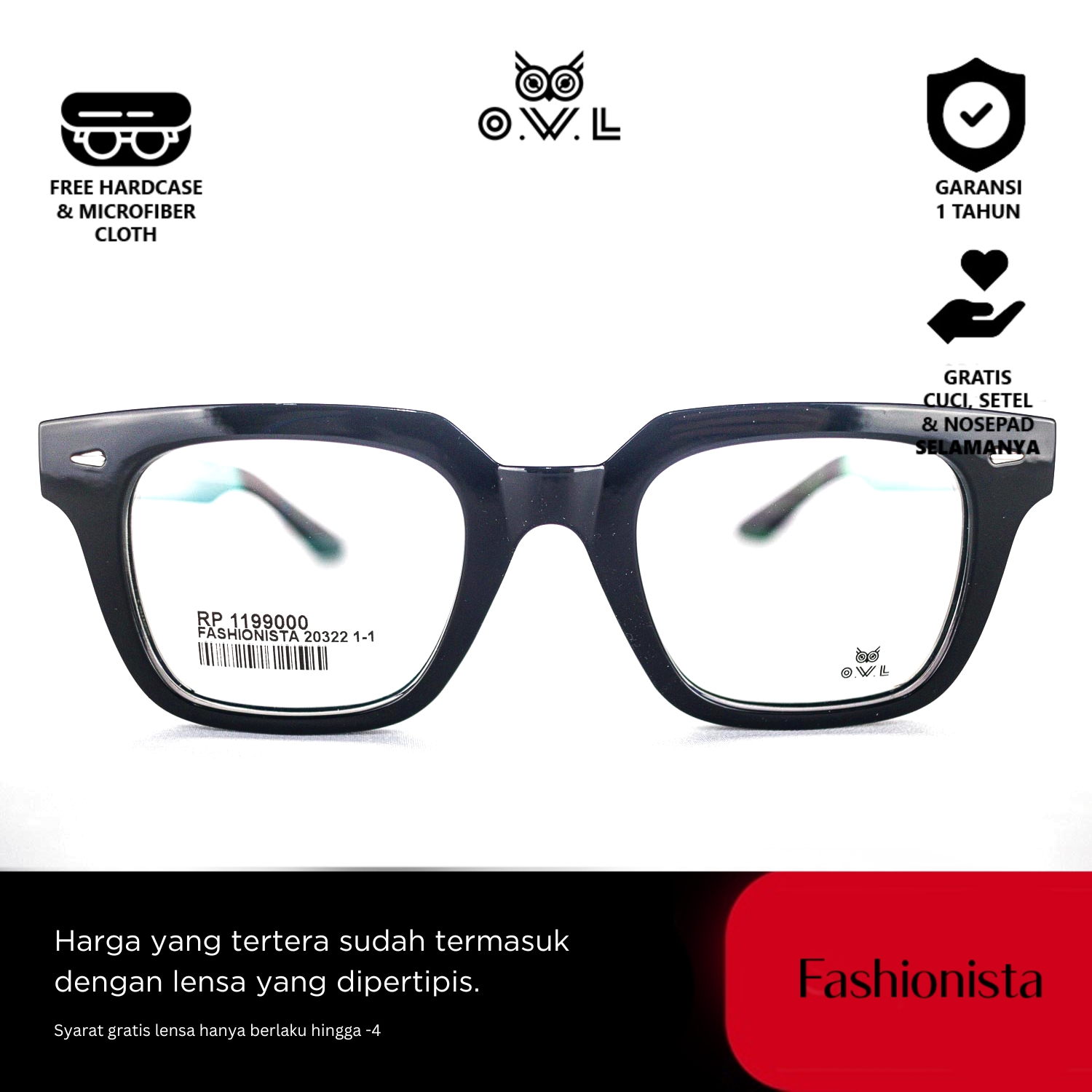 O.W.L juga memberikan layanan after-sales seperti pencucian kacamata, penggantian nosepad, dan penyesuaian kacamata secara GRATIS seumur hidup di seluruh OWL Store terdekat se-Indonesia.