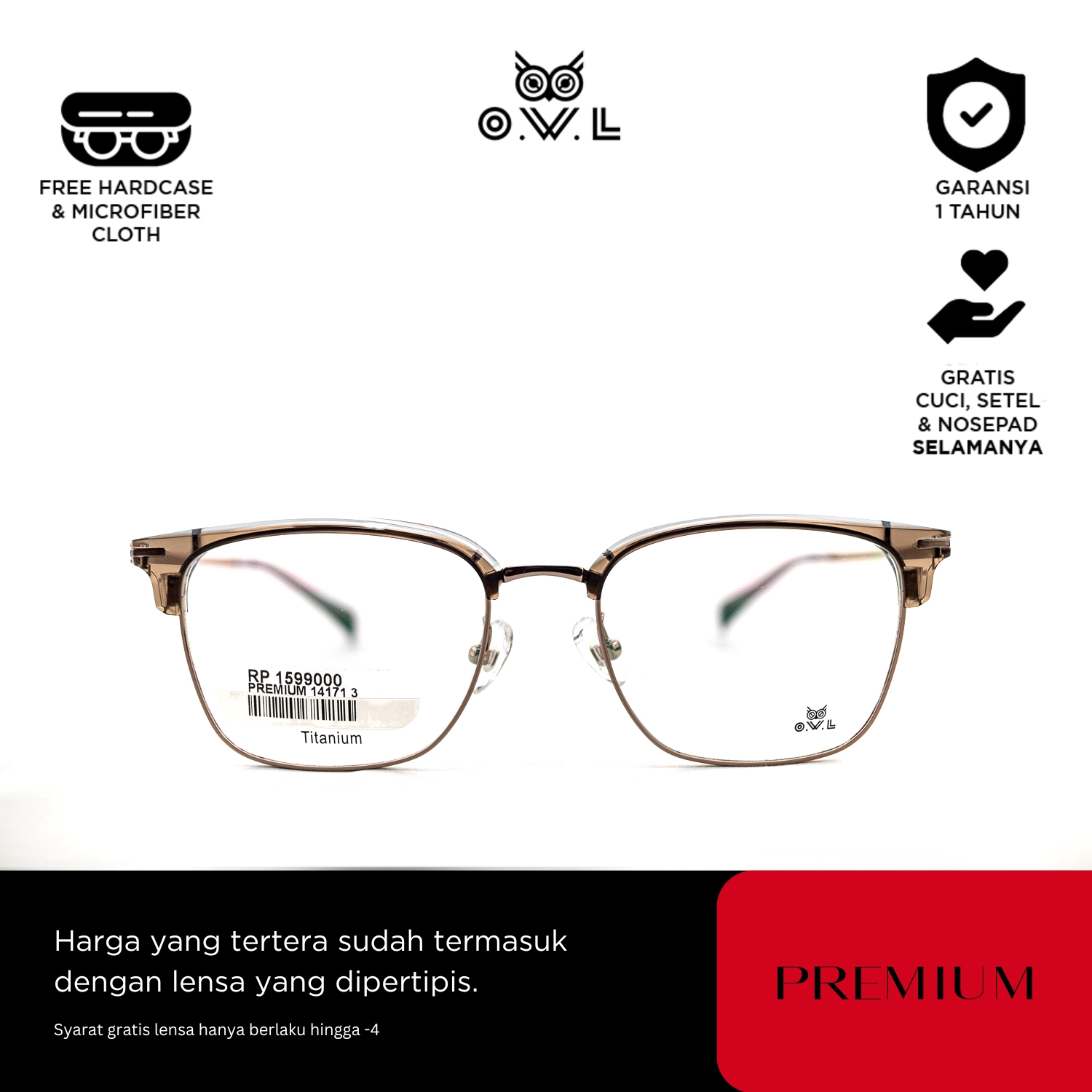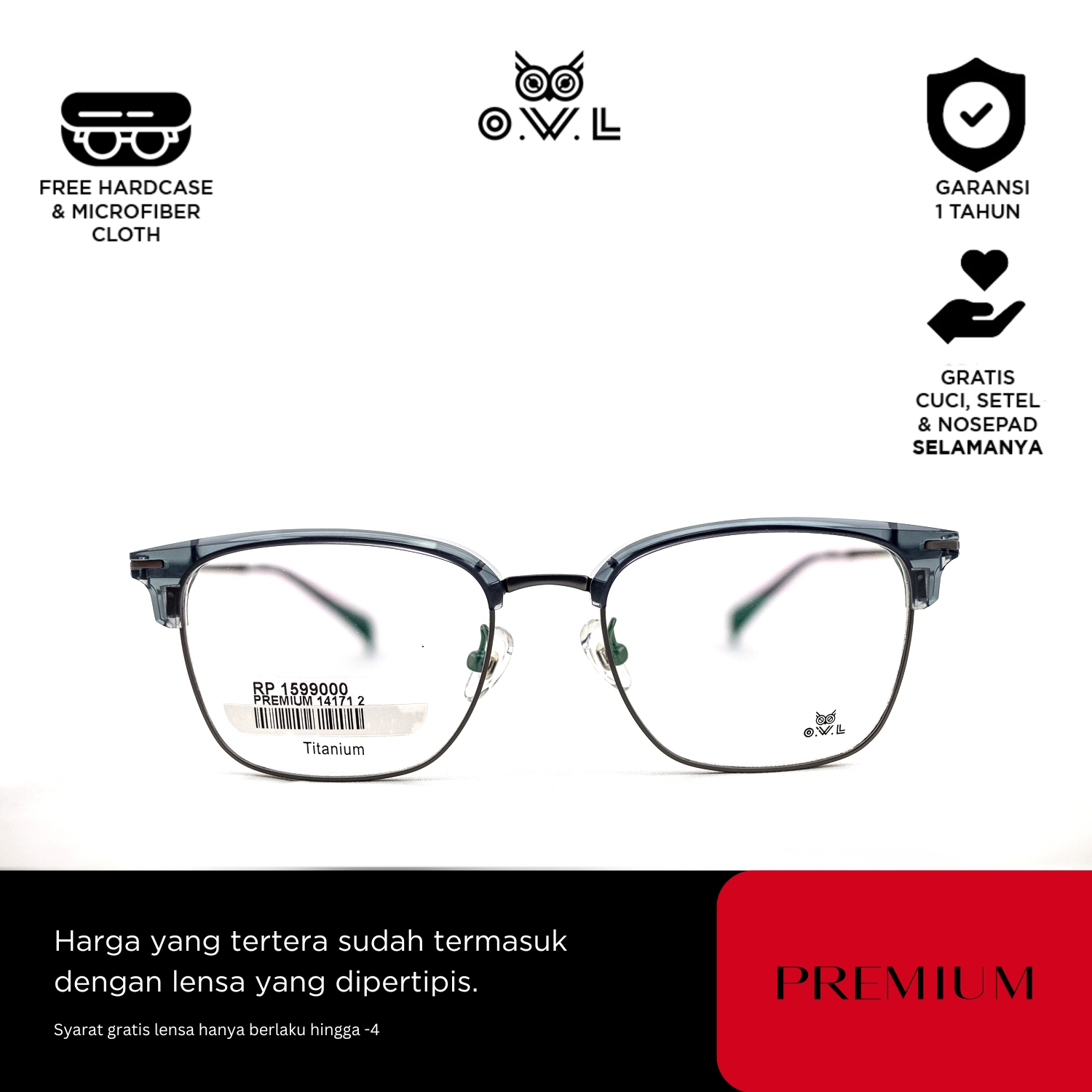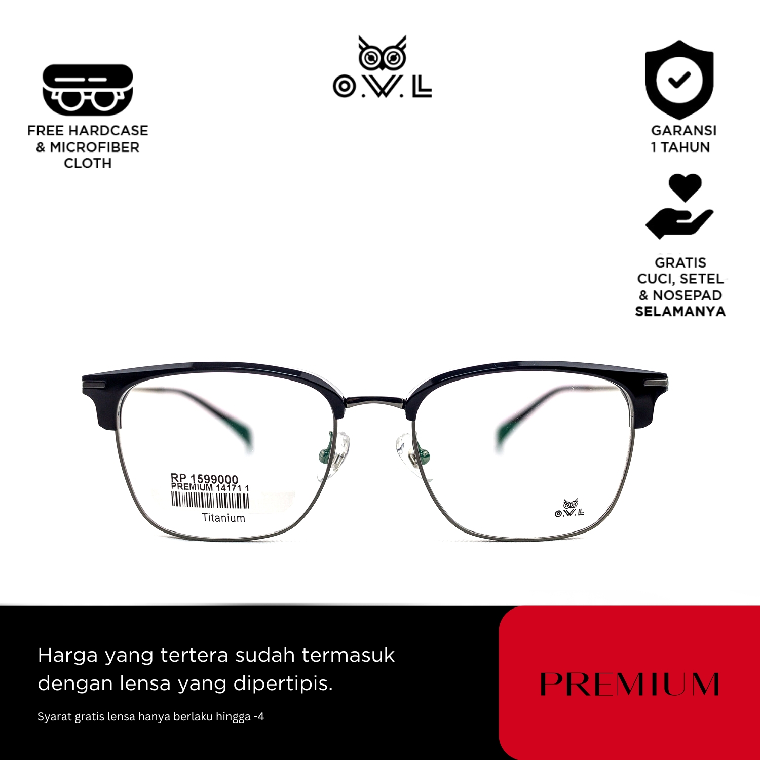 O.W.L juga memberikan layanan after-sales seperti pencucian kacamata, penggantian nosepad, dan penyesuaian kacamata secara GRATIS seumur hidup di seluruh OWL Store terdekat se-Indonesia.
