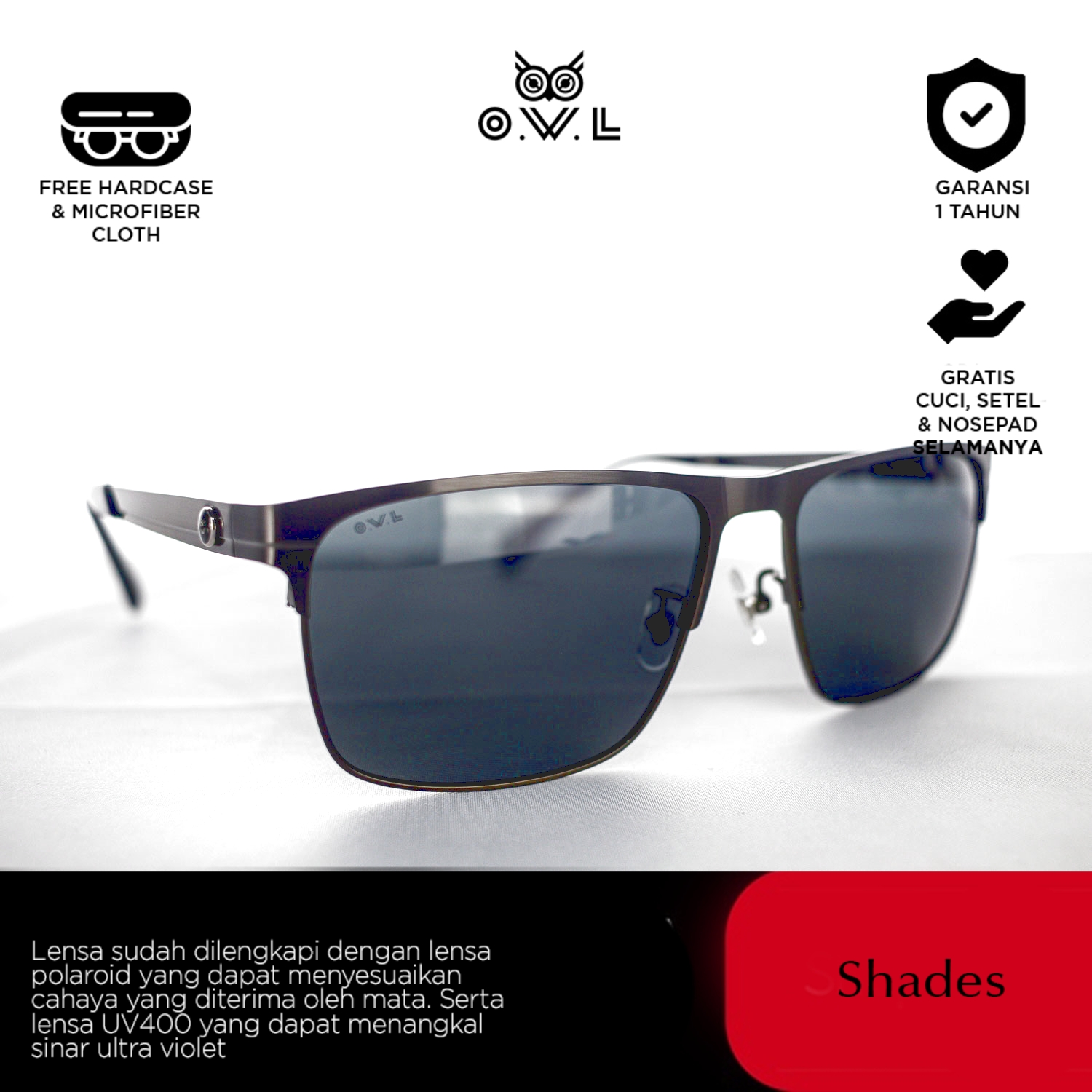 O.W.L Shades merupakan koleksi kacamata hitam atau sunglasses dengan ciri khas O.W.L yang selalu memberikan tampilan penuh gaya sekaligus melindungi dari paparan sinar matahari dilengkapi UV Protection dan Polaroid Lens. Polaroid lens merupakan lensa yang dilapisi dengan filter khusus untuk dapat menyaring sinar cahaya matahari yang akan masuk, sehingga membuat penglihatan nyaman dan tidak menyilaukan...