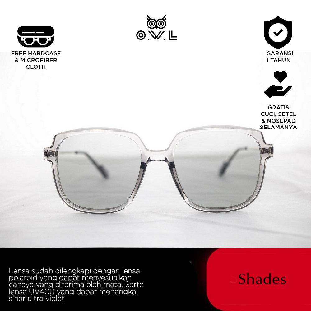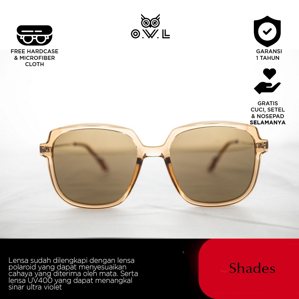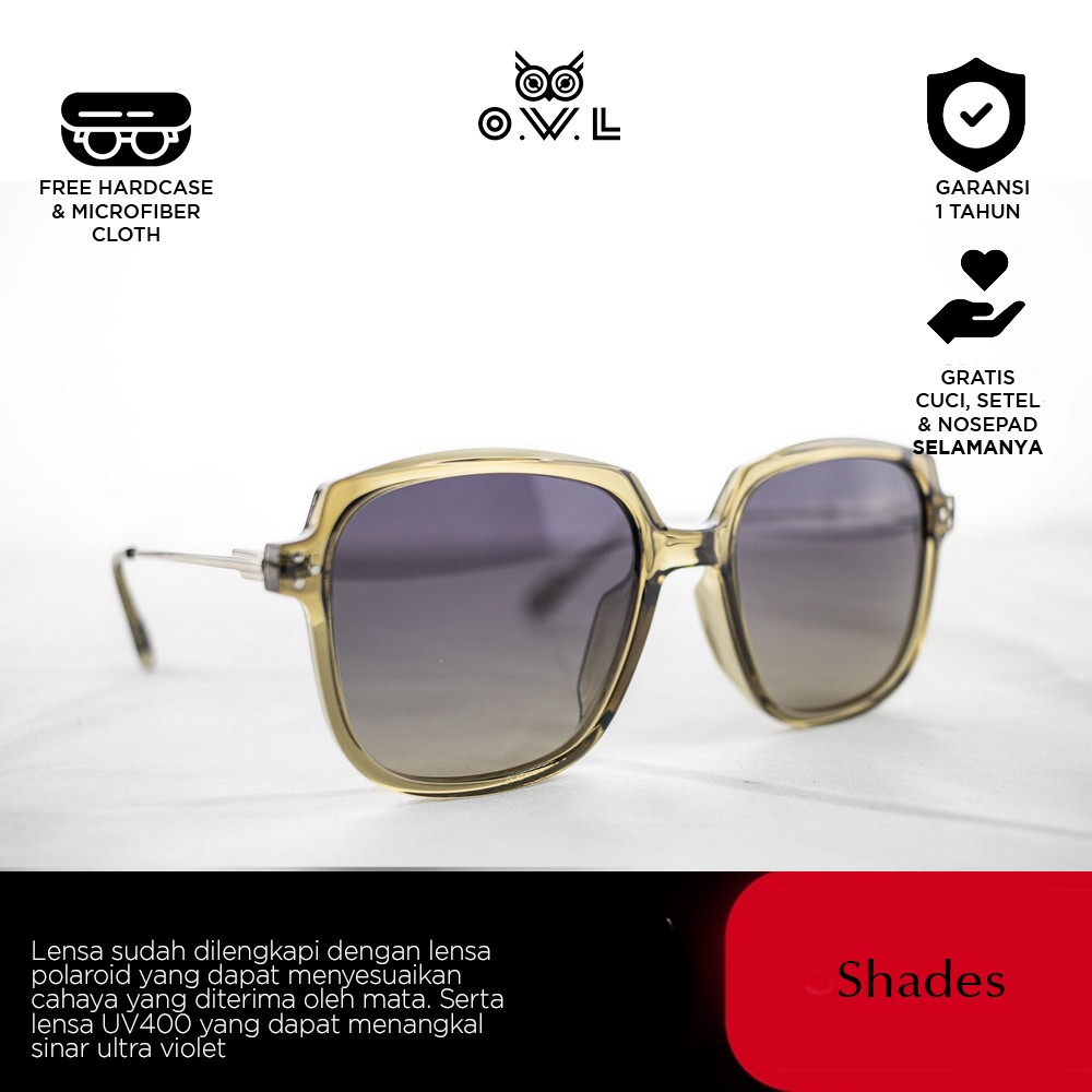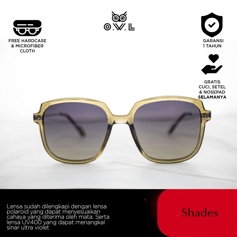 O.W.L Shades merupakan koleksi kacamata hitam atau sunglasses dengan ciri khas O.W.L yang selalu memberikan tampilan penuh gaya sekaligus melindungi dari paparan sinar matahari dilengkapi UV Protection dan Polaroid Lens. Polaroid lens merupakan lensa yang dilapisi dengan filter khusus untuk dapat menyaring sinar cahaya matahari yang akan masuk, sehingga membuat penglihatan nyaman dan tidak menyilaukan...