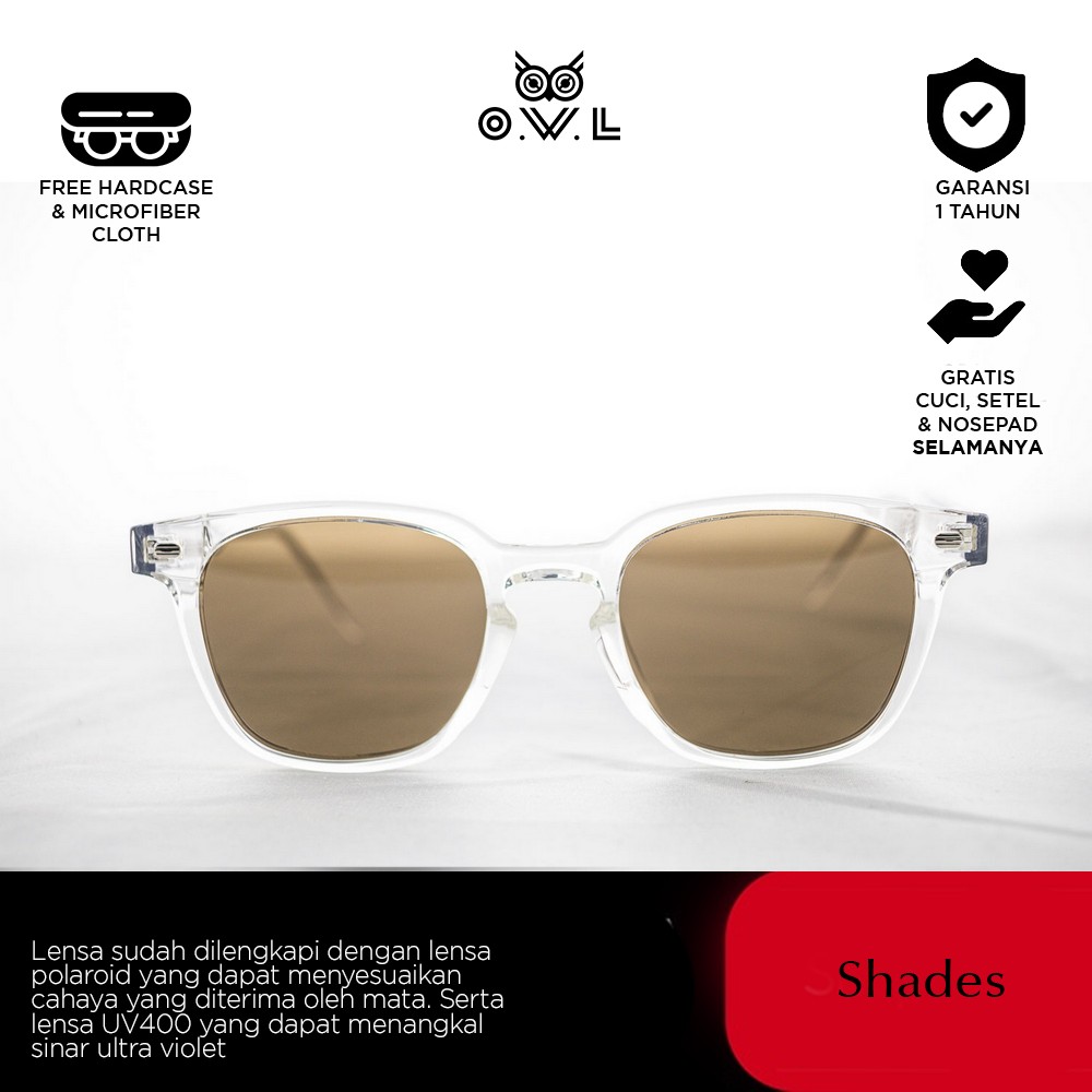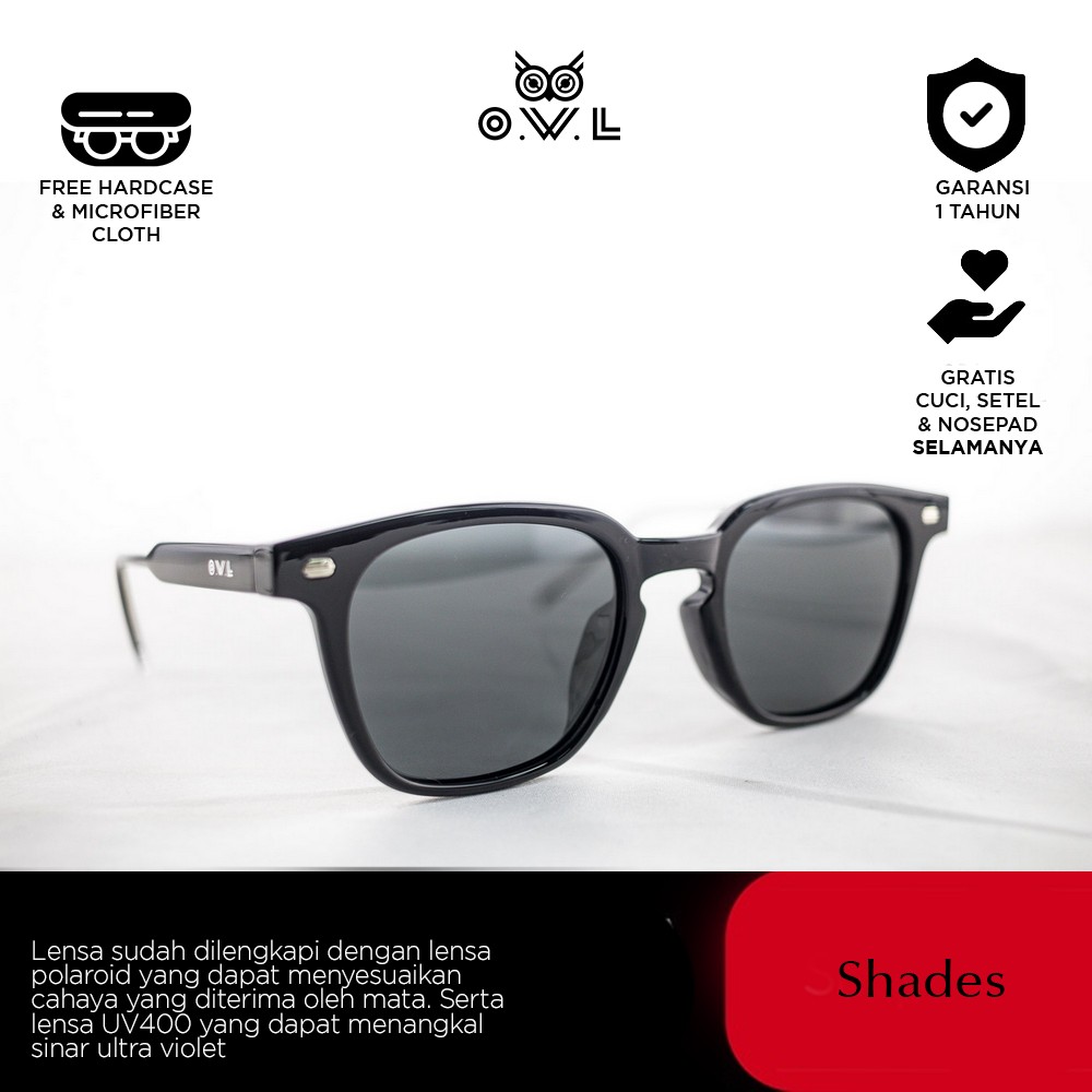 O.W.L Shades merupakan koleksi kacamata hitam atau sunglasses dengan ciri khas O.W.L yang selalu memberikan tampilan penuh gaya sekaligus melindungi dari paparan sinar matahari dilengkapi UV Protection dan Polaroid Lens. Polaroid lens merupakan lensa yang dilapisi dengan filter khusus untuk dapat menyaring sinar cahaya matahari yang akan masuk, sehingga membuat penglihatan nyaman dan tidak menyilaukan....