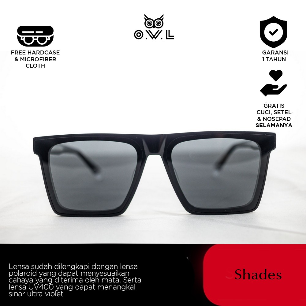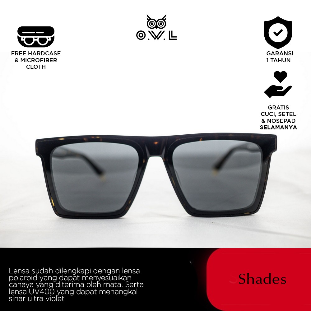 O.W.L Shades merupakan koleksi kacamata hitam atau sunglasses dengan ciri khas O.W.L yang selalu memberikan tampilan penuh gaya sekaligus melindungi dari paparan sinar matahari dilengkapi UV Protection dan Polaroid Lens. Polaroid lens merupakan lensa yang dilapisi dengan filter khusus untuk dapat menyaring sinar cahaya matahari yang akan masuk, sehingga membuat penglihatan nyaman dan tidak menyilaukan...