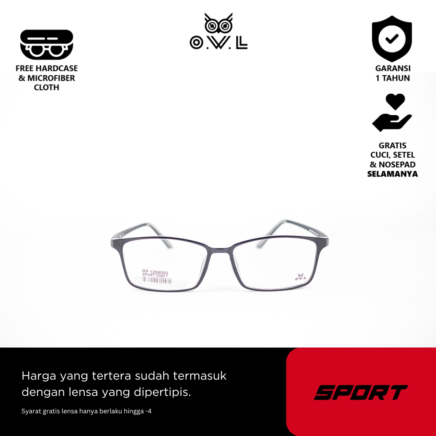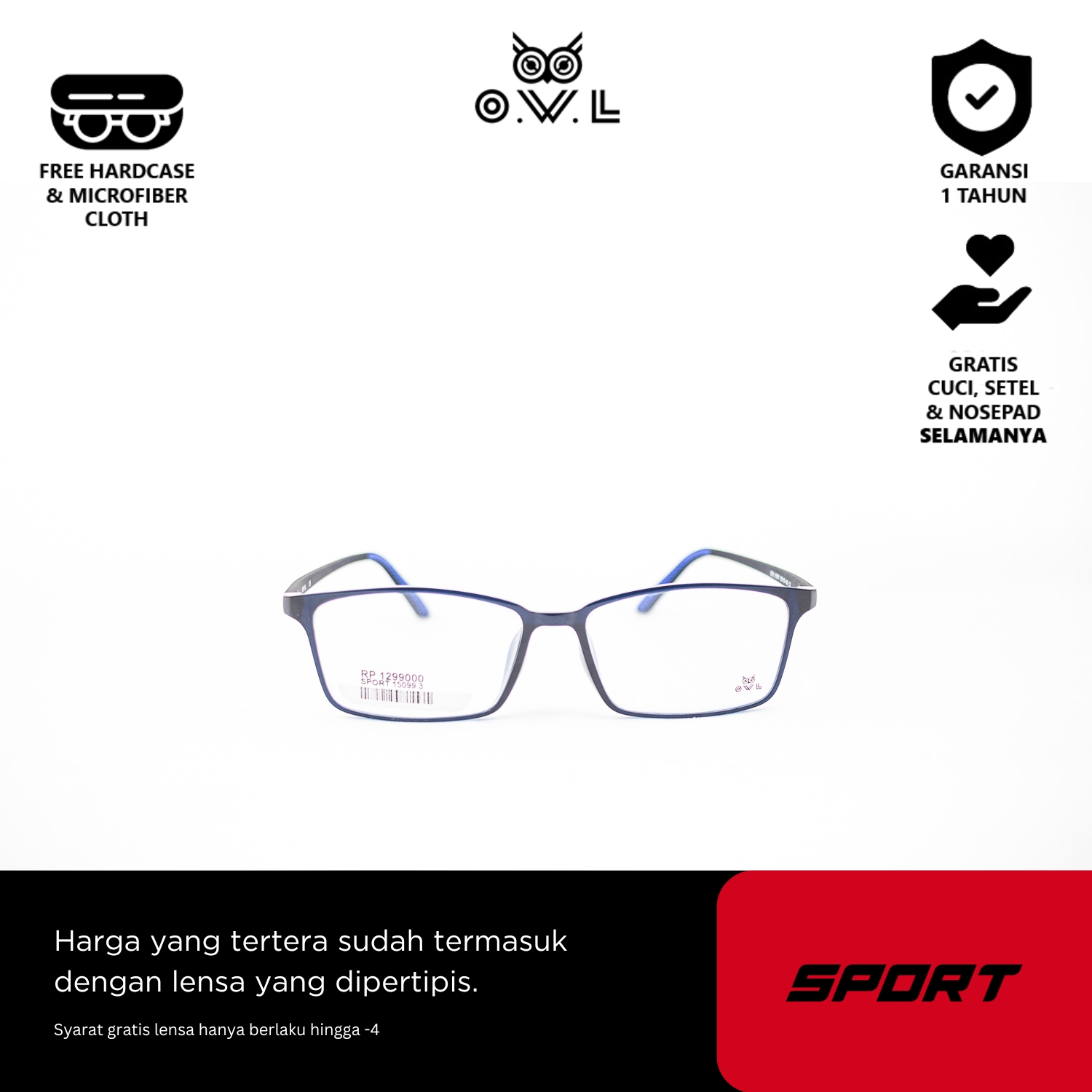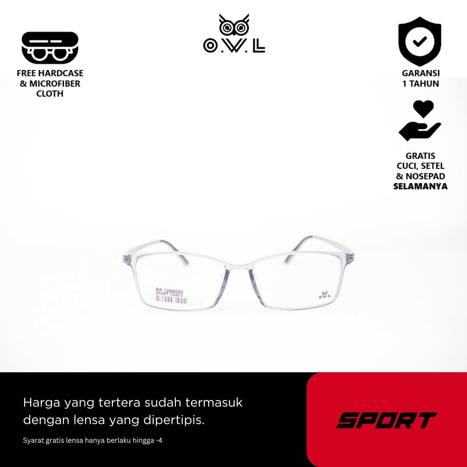 O.W.L juga memberikan layanan after-sales seperti pencucian kacamata, penggantian nosepad, dan penyesuaian kacamata secara GRATIS seumur hidup di seluruh OWL Store terdekat se-Indonesia.