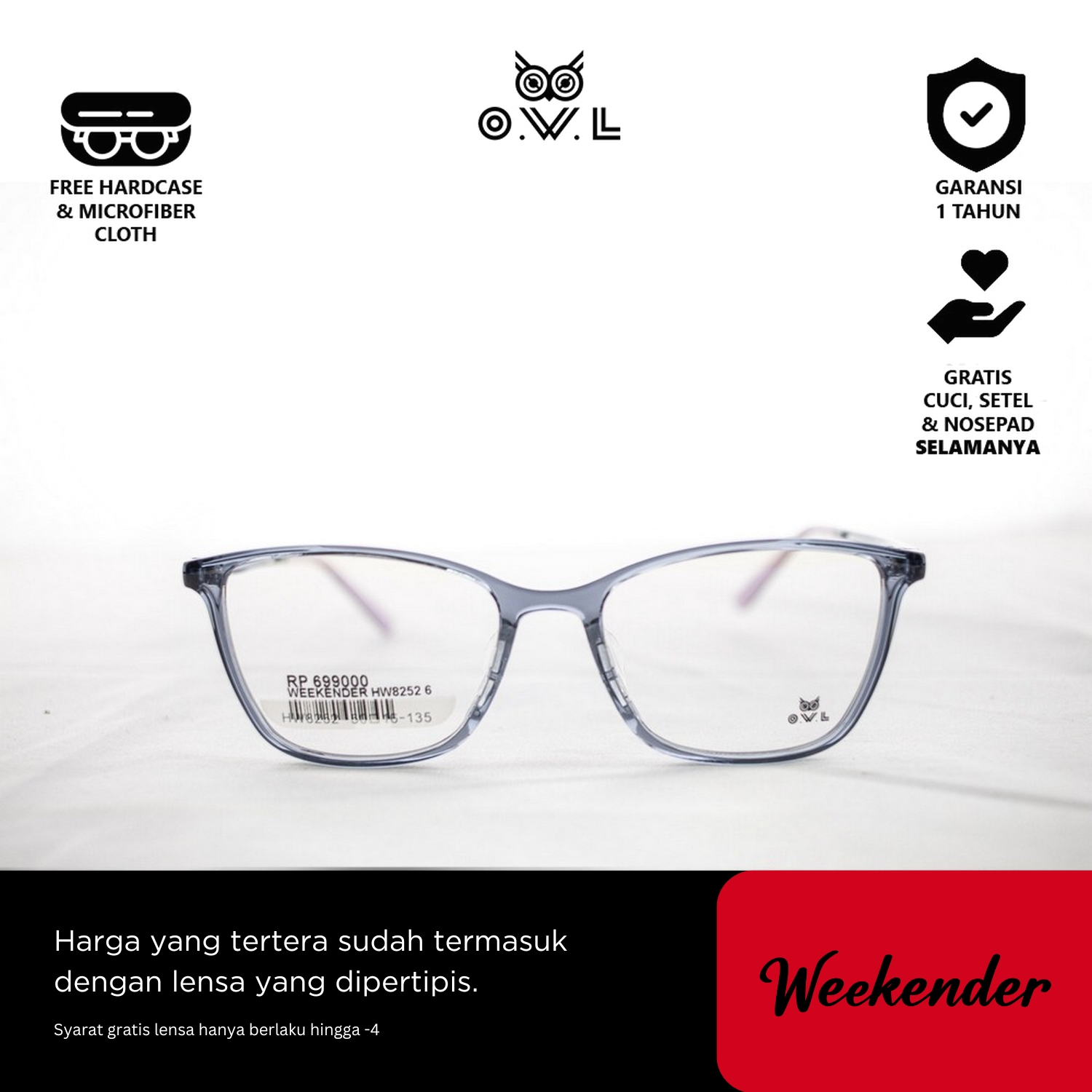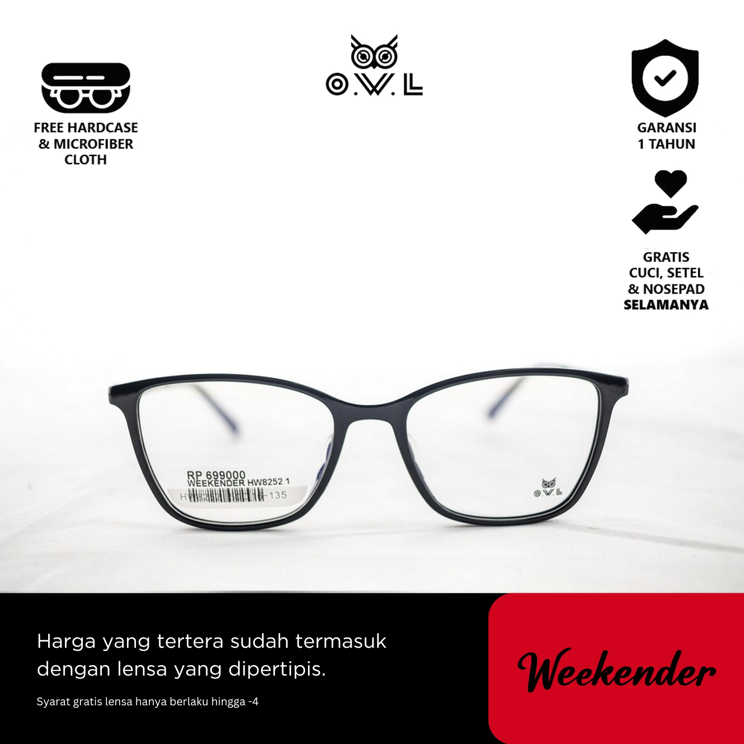 O.W.L juga memberikan layanan after-sales seperti pencucian kacamata, penggantian nosepad, dan penyesuaian kacamata secara GRATIS seumur hidup di seluruh OWL Store terdekat se-Indonesia.